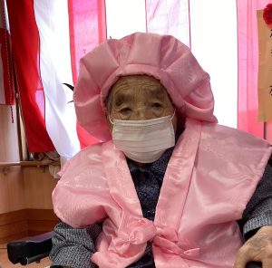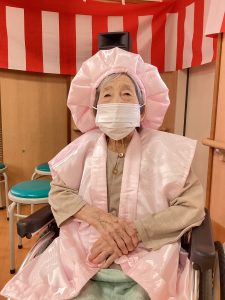 百寿の方が5名というのは例年にない人数であったため、桃色のちゃんちゃんこを新たに買い足し、それぞれの方に着用していただきました。