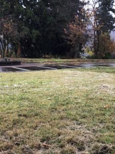 午前9時頃、園庭の芝生はうっすら白くなりました。