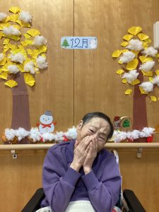 撮影ブースには、職員手作りの「雪だるまの精⛄」の壁飾りをご用意しました。